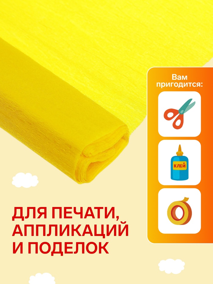 Бумага крепированная 50×200 см, в рулоне, 32 г/м², жёлтая