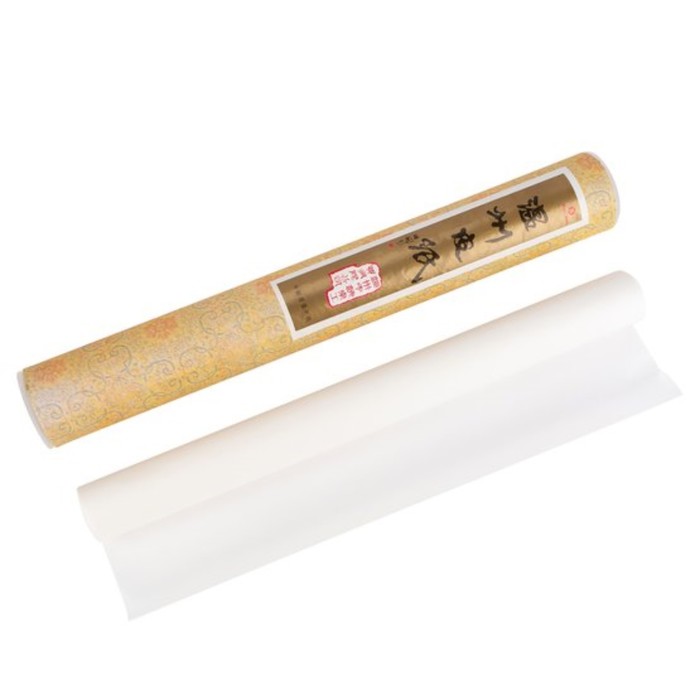 Рисовая бумага белого цвета для каллиграфии и живописи или декупажных работ. Рулон нелинованной бумаги упакован в жесткий тубус. Тушь не растекается так как бумага хорошо ее впитывает. Идеальна для живописи в свободой манере.