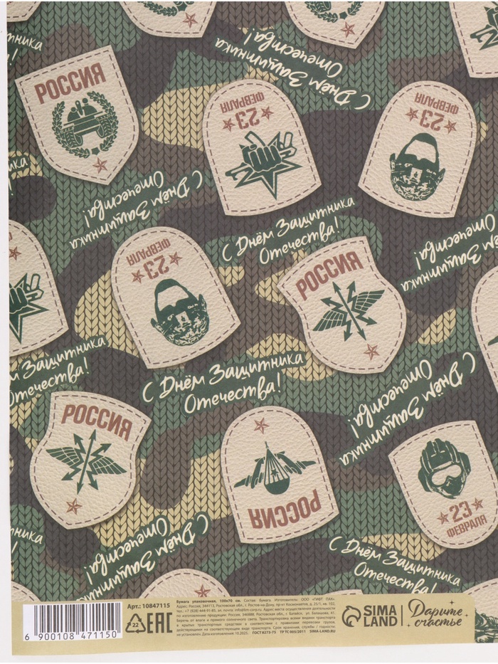 Односторонняя упаковочная бумага размером 100 × 70 см — идеальный выбор для упаковки подарка на 23 февраля. Она подойдёт любому мужчине, независимо от его интересов и предпочтений.