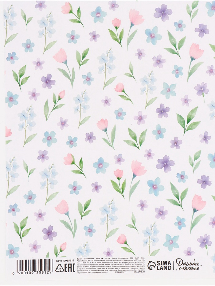 Бумага упаковочная глянцевая «Нежные цветы», 50×70 см