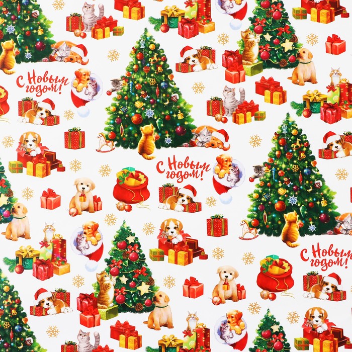 Бумага упаковочная глянцевая «Зимняя сказка», 70 х 100 см