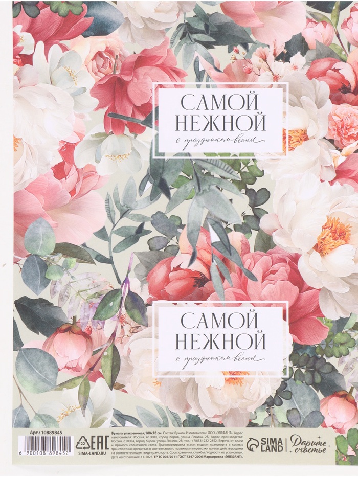 Бумага упаковочная крафт «Цветы», 70×100 см