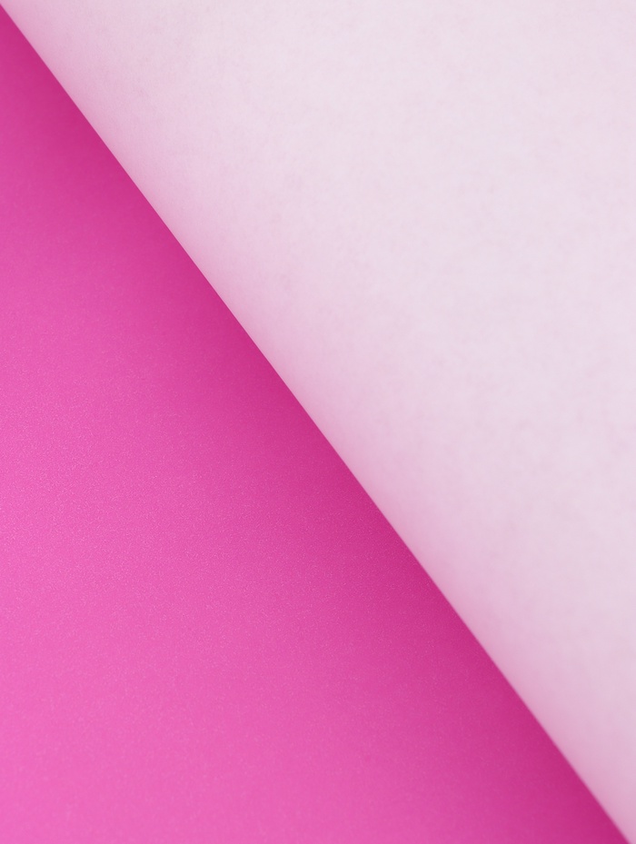 - Яркий однотонный цвет: Бумага окрашена в интенсивный розовый цвет «фуксия» с одной стороны. Такое решение позволяет играть на контрасте, оставляя сгибы и внутреннюю часть упаковки нейтральными.