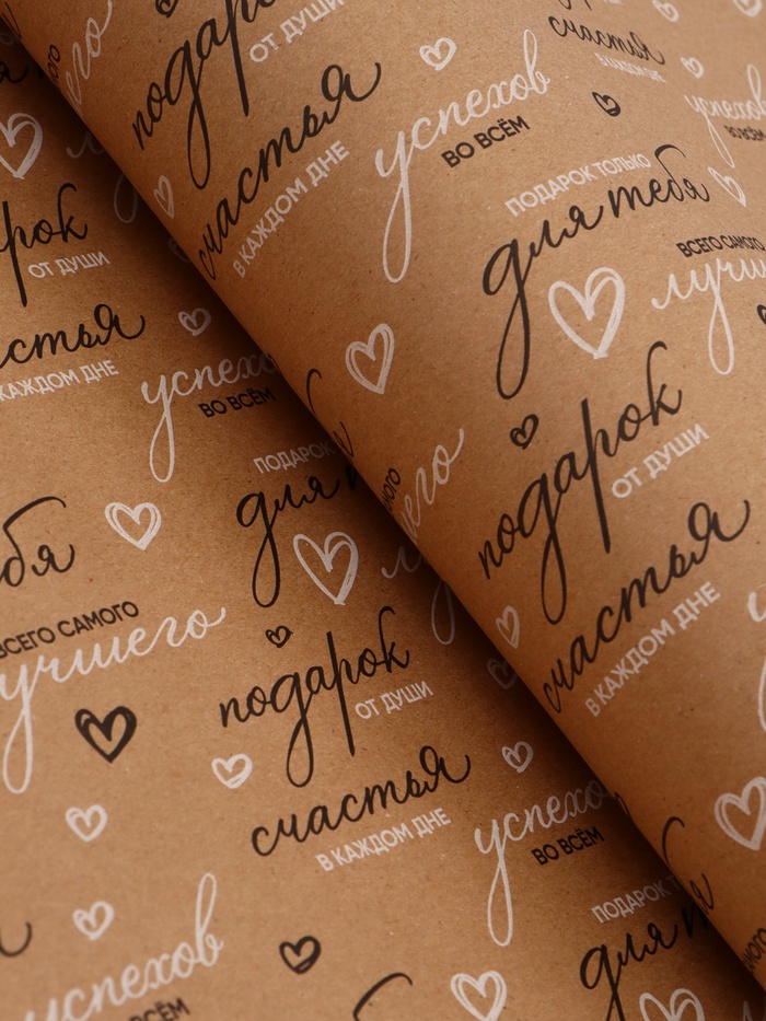 Бумага упаковочная крафт "Пожелания", черный/белый, 0,7 х 10± 5% м, 60 гр