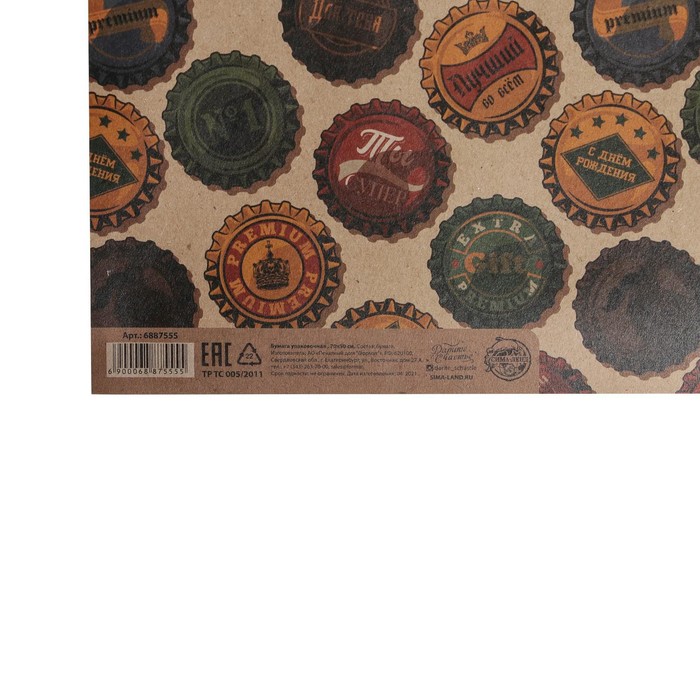 Бумага упаковочная крафтовая «Крышки», 50 х 70 см
