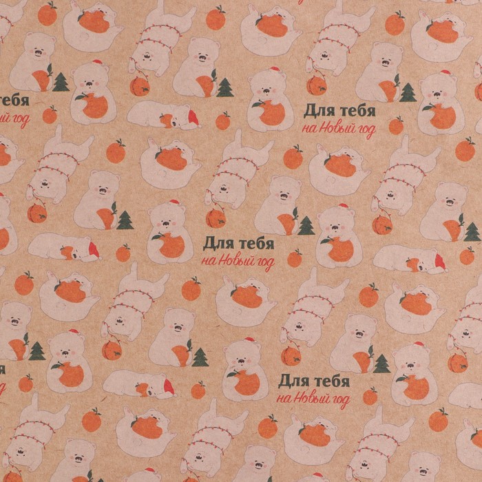 Бумага упаковочная крафтовая «Медвежата», 50 х 70 см