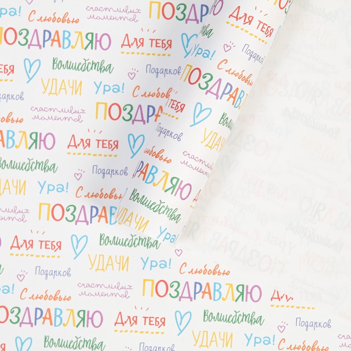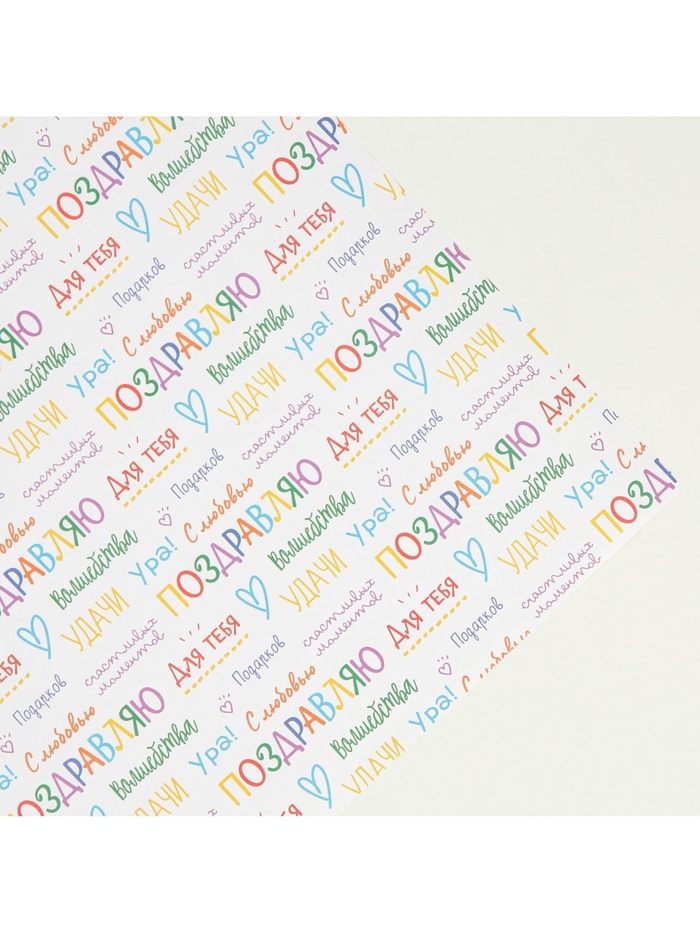 Бумага упаковочная крафтовая «Поздравляю», 70 х 100 см