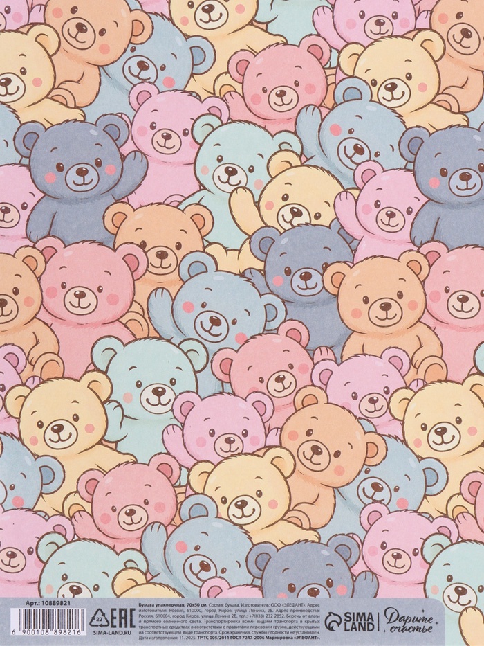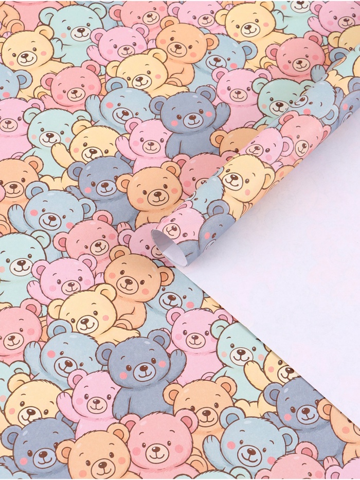 Бумага упаковочная крафтовая «Весёлые медведи», 50×70 см