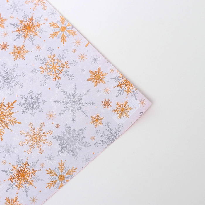 Бумага упаковочная новогодняя глянцевая двусторонняя «Волшебные снежинки», 70×100 см