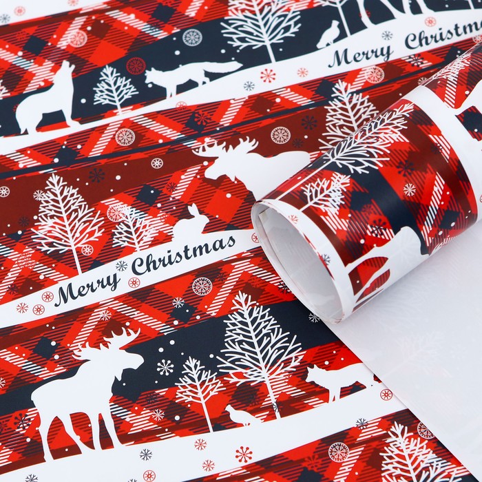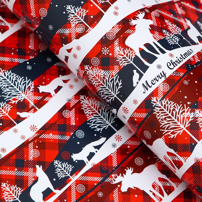 Бумага упаковочная новогодняя глянцевая «Лесной Новый год», 70×100 см, 1 лист