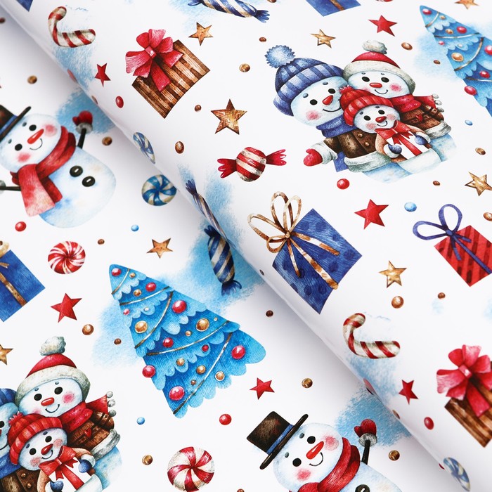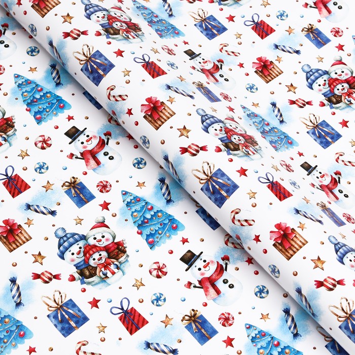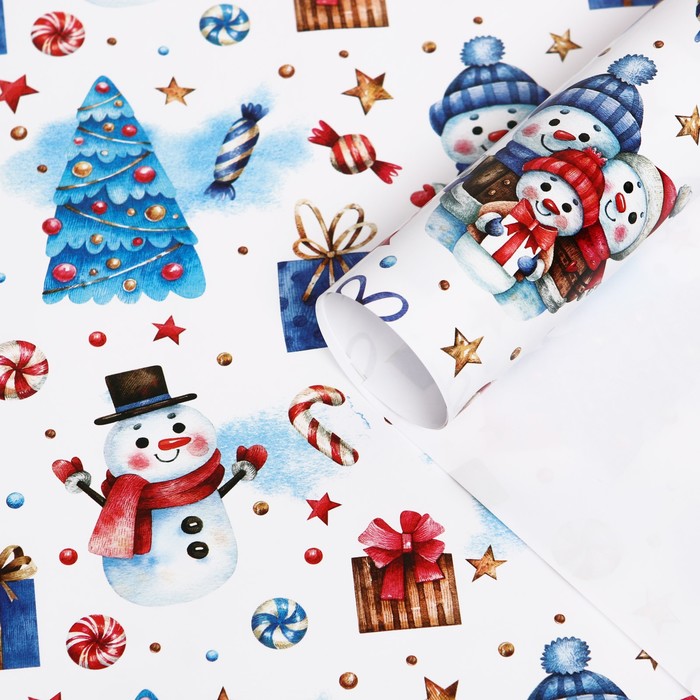 Бумага упаковочная новогодняя глянцевая «Зимушка», 70 х 100 см, 1 лист