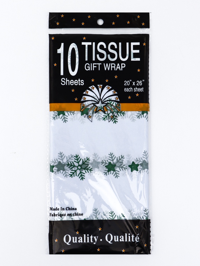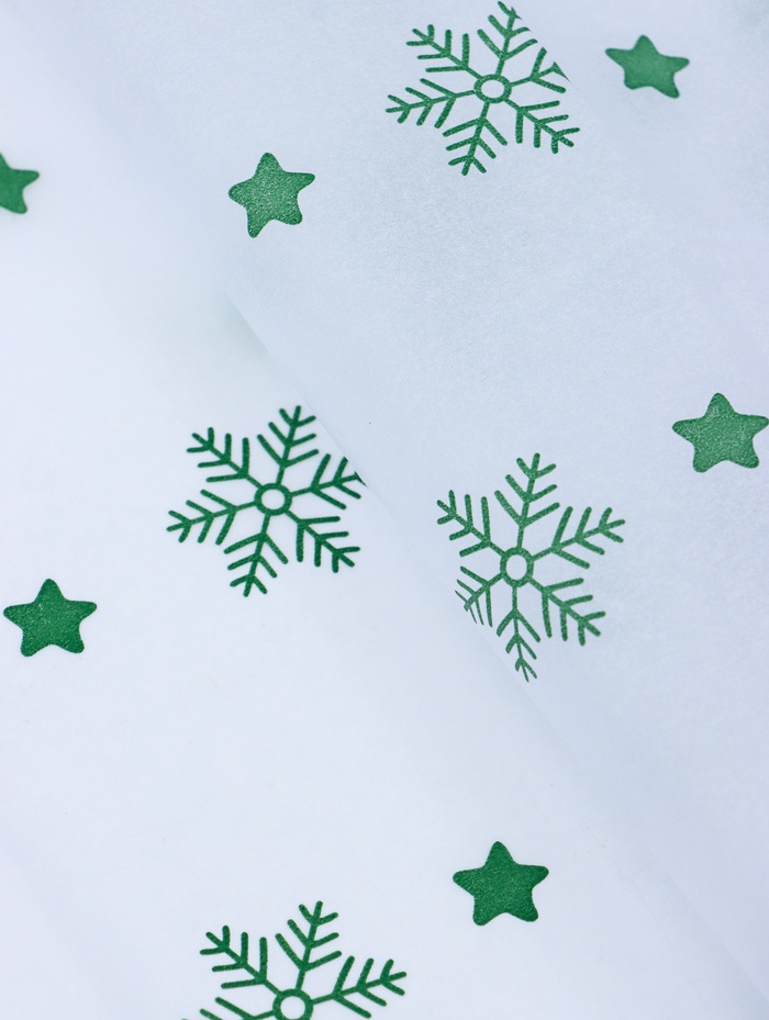 Классическое зимнее настроение! Бумага упаковочная тишью «Снежинки со звездами», зелёная, 50×66 см — это праздничный материал в традиционной новогодней гамме. Зеленый фон с зимним узором создает атмосферу уютного праздника.