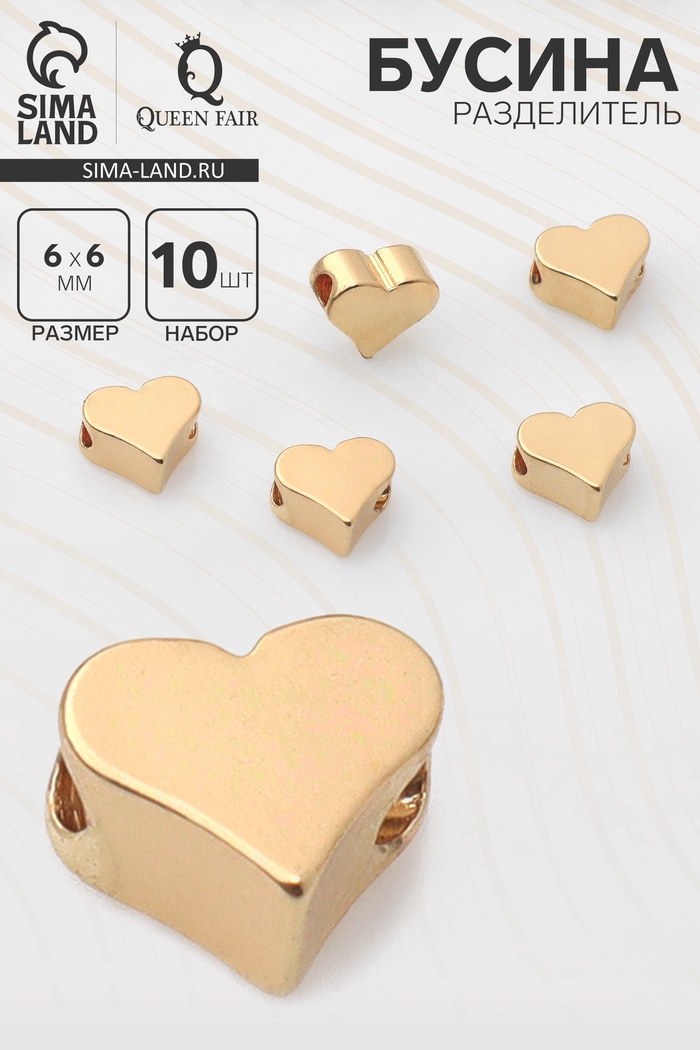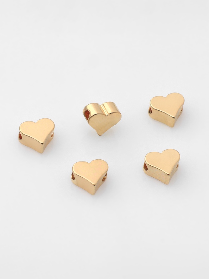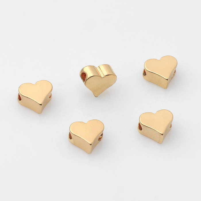 Бусина - разделитель «Сердечко», родированная , 6×6 мм, внутренний d=2 мм, (набор 10 шт.), цвет золото