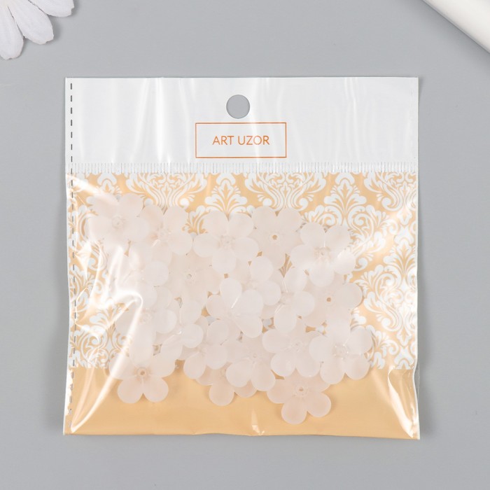 Бусины для творчества пластик "Цветочек белый матовый" набор 20 шт 2,2х2,2 см