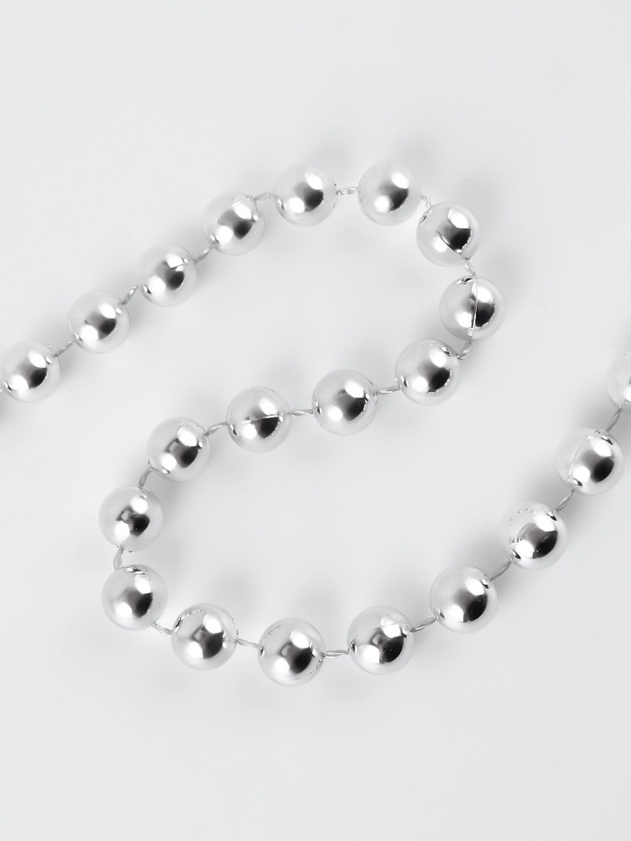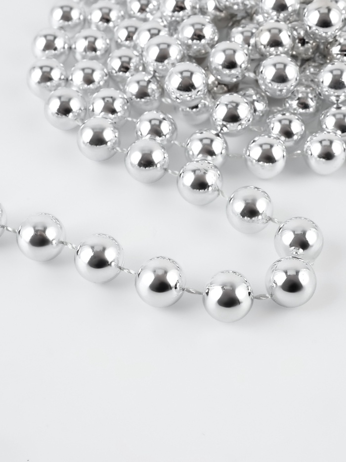 Серебряный блеск для вашего творчества! Гибкие бусы из пластиковых бусин — готовое решение для декора, и дизайнерских проектов. Гладкие серебристые шарики на прочной нити легко режутся, комбинируются с другими материалами и сохраняют форму даже в сложных композициях.