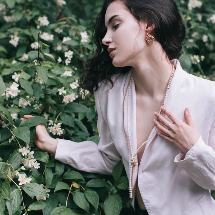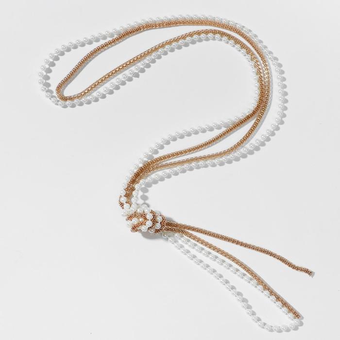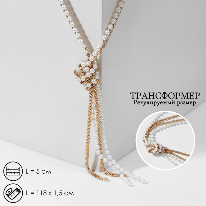 Бусы 2 нити "Трансформер" (несколько способов носки), жемчужные, цвет бело-золотой ,118см