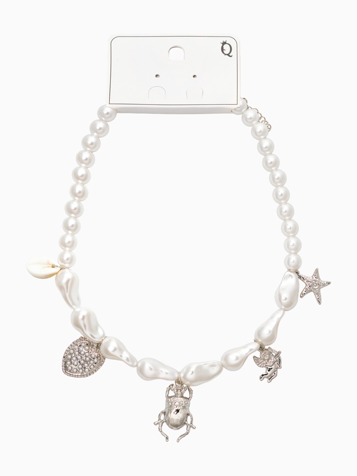 Бусы «Жемчуг. Скарабей», 40 см, №10, белые в серебре