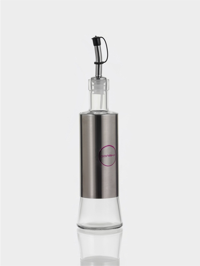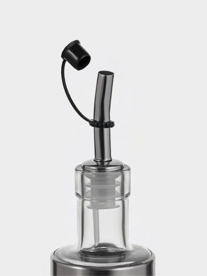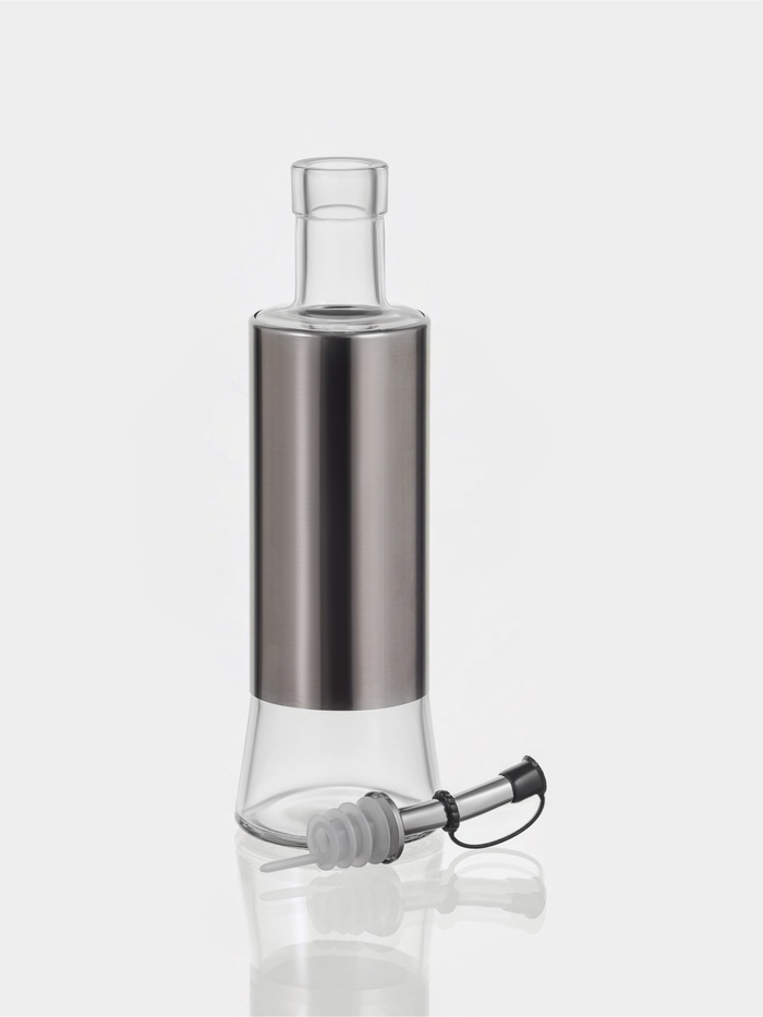Стильная ёмкость для соуса из прочного стекла и полированной нержавеющей стали украсит любой стол.