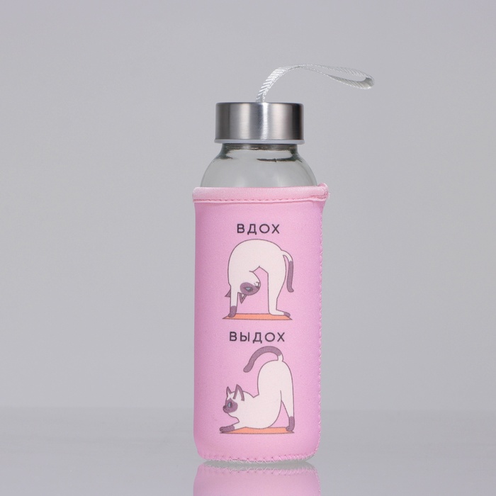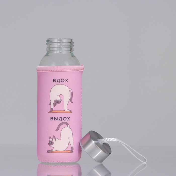 Комфортное и лёгкое использование обеспечивается прочным стеклом, которое сохраняет чистый вкус ваших напитков. Чехол защищает бутылку от повреждений и предотвращает скольжение, а металлическая крышка с удобным подвесом обеспечивает надёжную герметичность, позволяя вам не волноваться о протечках.