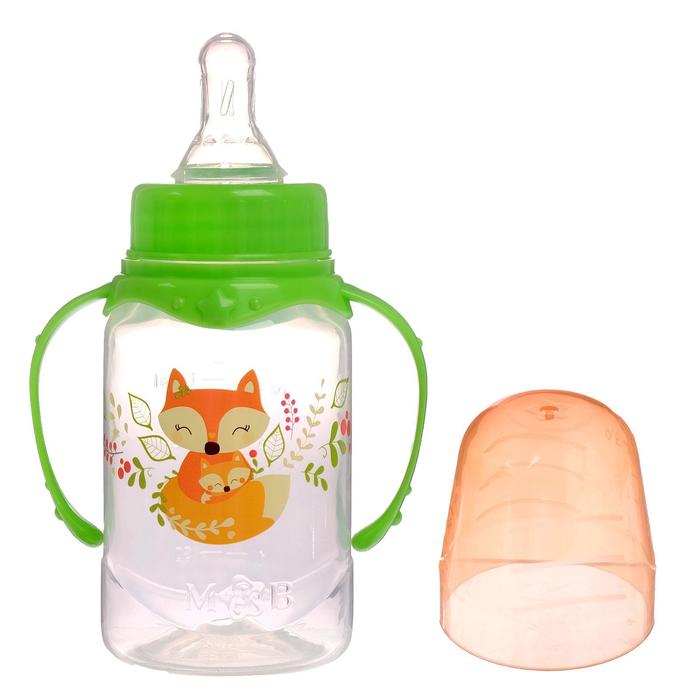 Бутылочка для кормления M&B «Лисичка Соня», классическое горло, с ручками, от 0 мес., 150 мл, зелёный