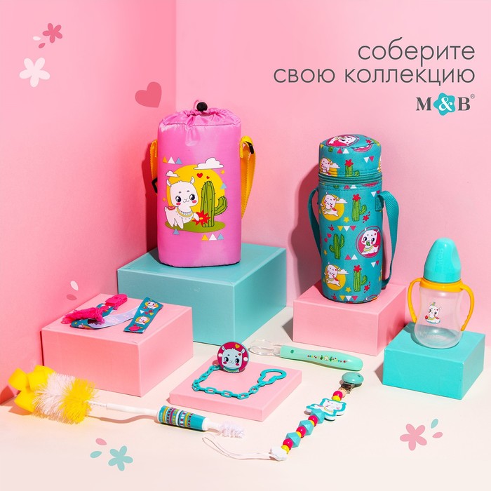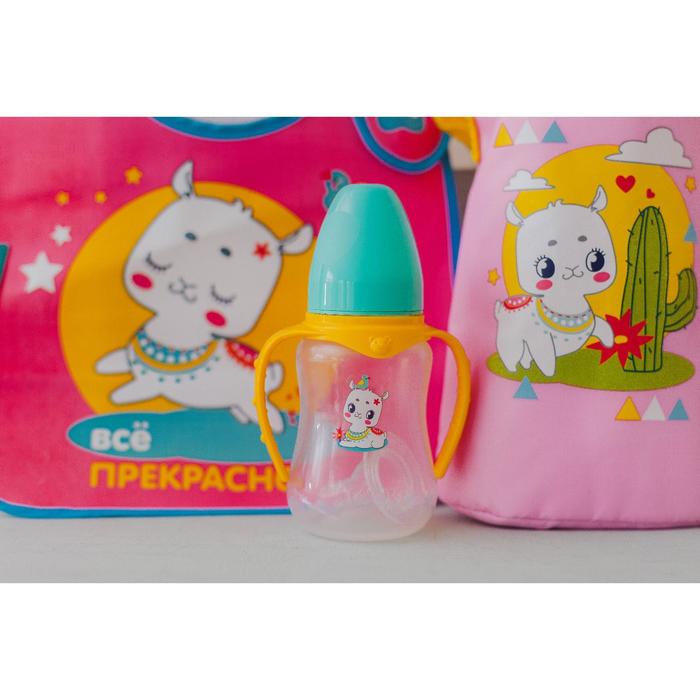 Бутылочка для кормления M&B «ТРЕНД. Лама», классическое горло, с ручками, от 0 мес., 150 мл., приталенная, бирюзовый