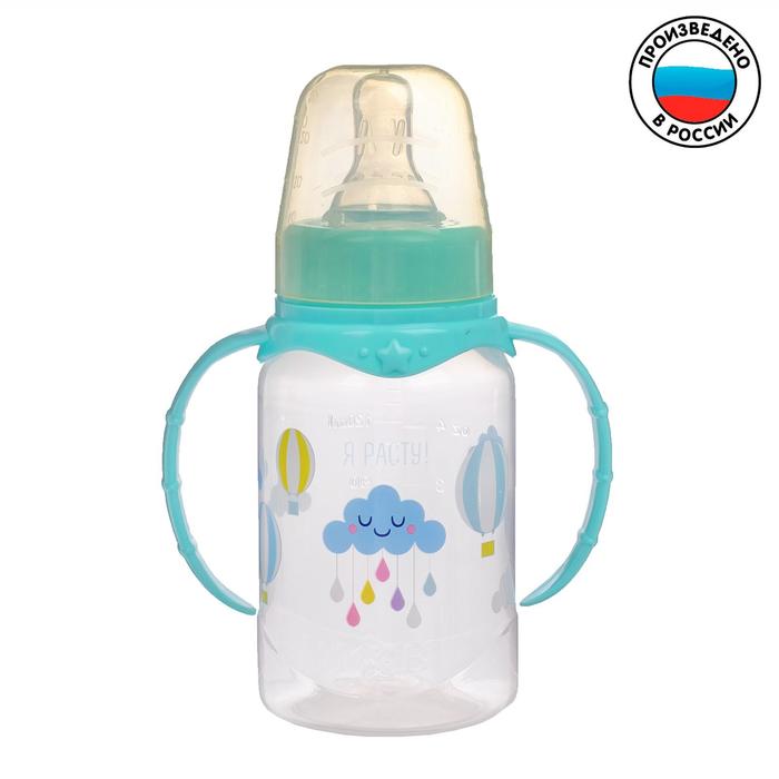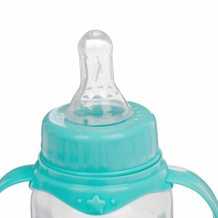 Бутылочка для кормления «Нежное облачко», классическое горло, с ручками, 150 мл., от 0 мес., цвет бирюзовый