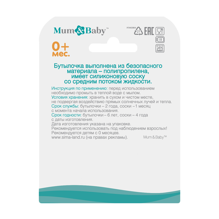 Детская бутылочка изготовлена в России из сырья отечественного производства. Все материалы сертифицированы и безопасны для здоровья новорождённых. Полипропилен и силикон не выделяют вредных веществ при контакте с жидкостью и стерилизации.