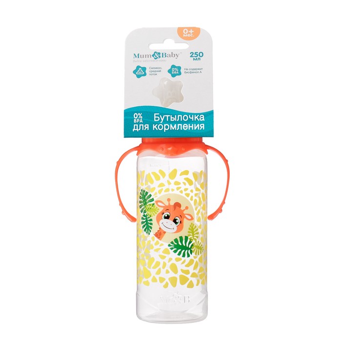 Бутылочка для кормления «Жирафик Лило» детская классическая, с ручками, 250 мл, от 0 мес., цвет оранжевый