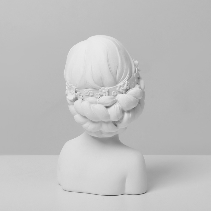 Если вы занимаетесь реализацией разнообразных украшений и аксессуаров, то вам нужно наглядно продемонстрировать свой товар, представив его в лучшем виде. Бюст для украшений "Девушка в цветах", анфас, 7,5*14*9,5 см, цвет белый как нельзя лучше справится с этой задачей! У каждого украшения появится своё место, откуда его можно будет хорошо рассмотреть.