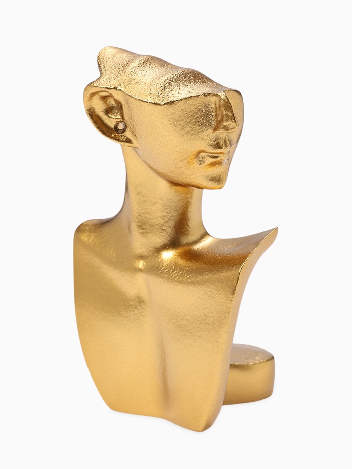 Если вы занимаетесь реализацией разнообразных украшений и аксессуаров, то вам нужно наглядно продемонстрировать свой товар, представив его в лучшем виде. Бюст для украшений, пол-лица мини, отверстие под серьгу, 6,6*6,8*11 см, цвет золотой как нельзя лучше справится с этой задачей! У каждого украшения появится своё место, откуда его можно будет хорошо рассмотреть.