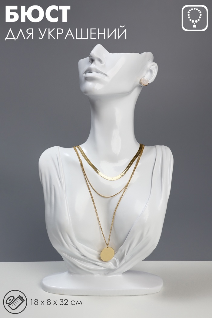 Изготовленный из прочного полистоуна, бюст обеспечивает надежную поддержку и стильный внешний вид. Он станет не только функциональной подставкой, но и истинным произведением искусства, подчеркивающим букет украшений и создающим атмосферу sophistication.