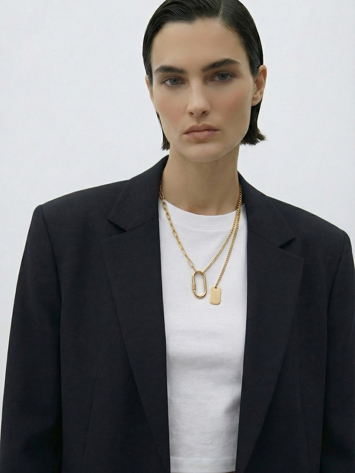 Кулон «Цепь» звенья, 2 нити, цвет серебро, 42 см