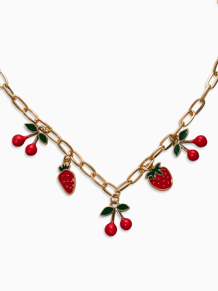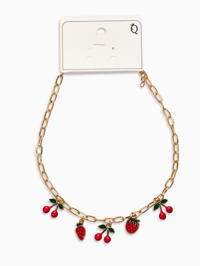 Цепь с подвесками "Вишня-клубника", цвет красный в золоте 40+удл
