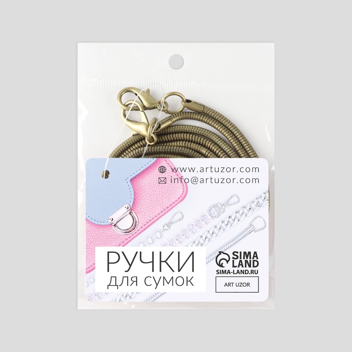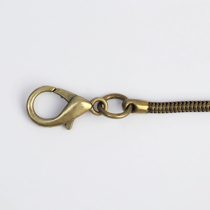 Бронзовая цепочка-шнур с карабинами — универсальное решение для повседневных сумок. Тонкие железные звенья диаметром 3,2 мм сочетают прочность и гибкость, а 120-сантиметровая длина позволяет экспериментировать со способами ношения.