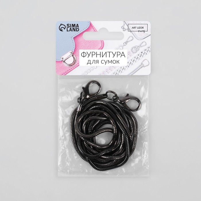 Цепочка-шнурок для сумки, с карабинами, железная, d=3.2 мм, 120 см, цвет чёрный никель
