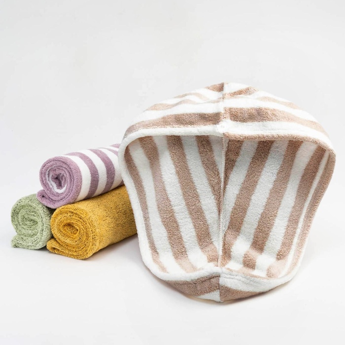 Чалма для сушки волос Этель «Полоски», цв.фиолетовый, 65*25 см, 100% п/э