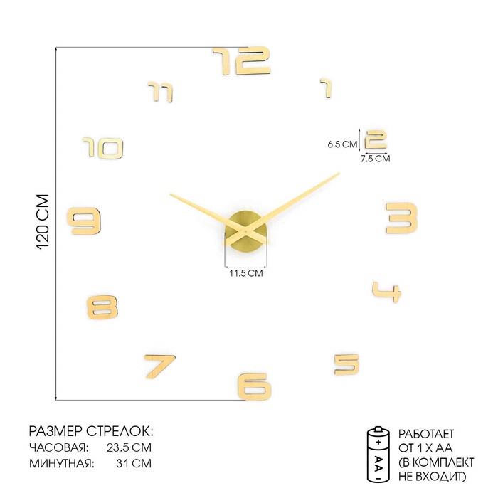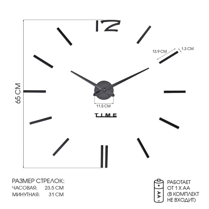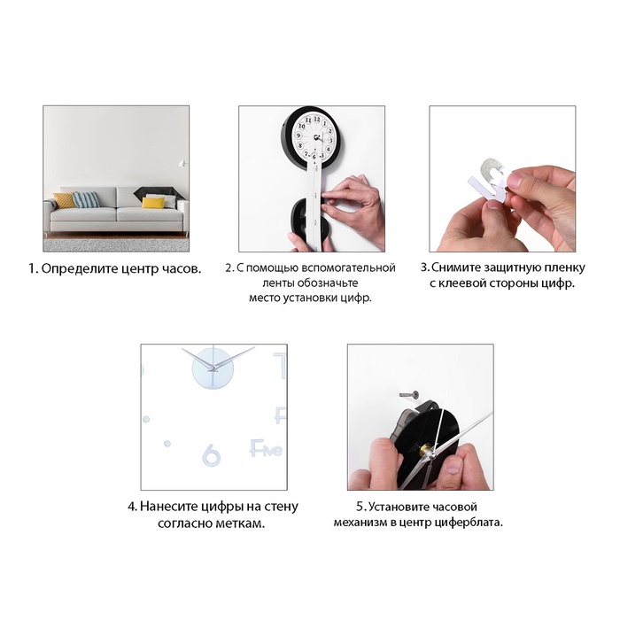 Создавайте часы в собственном стиле, проявляйте изобретательность и креативность. Не обязательно располагать числа по кругу — придайте аксессуару необычную форму, поменяйте диаметр циферблата, используйте не все элементы. Комплектующие легко клеятся на стену и без труда снимаются, поэтому смело воплощайте идеи в жизнь! У вас всегда будет возможность отсоединить детали и сделать всё заново.