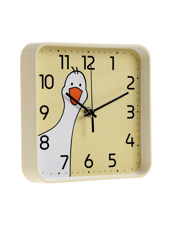 Квадратные настенные часы размером 19×19 см с забавным изображением гуся на ярко-жёлтом фоне привносят солнечное настроение в детскую комнату, где каждый час превращается в маленькое приключение. Кварцевый механизм с плавным ходом стрелок и арабскими цифрами делает процесс обучения времени лёгким и увлекательным, помогая ребёнку ориентироваться в днях с уверенностью.