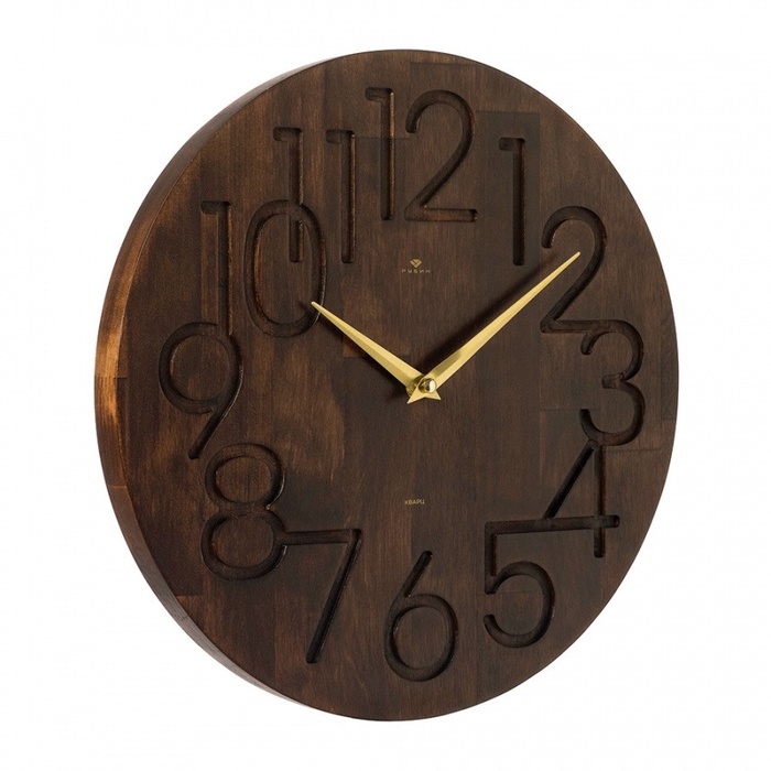 Часы настенные, интерьерные, бесшумные, d-35 см, дерево, открытые, темный циферблат