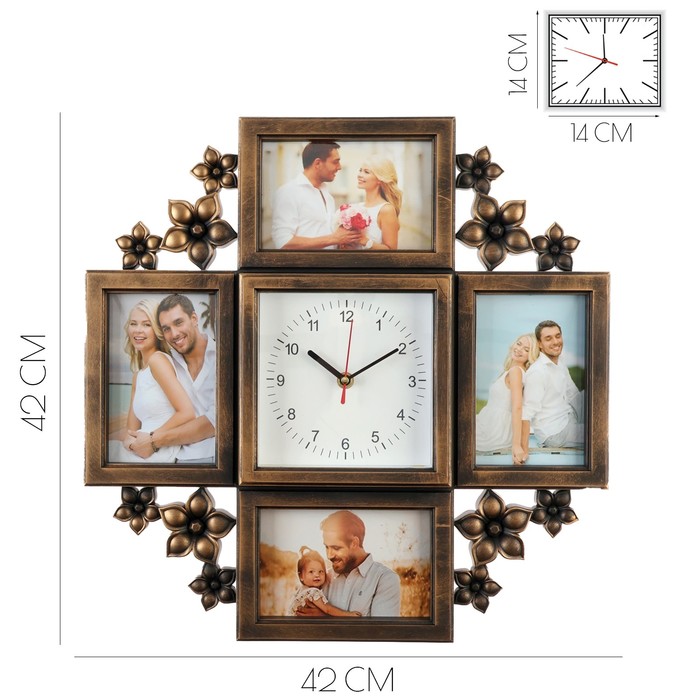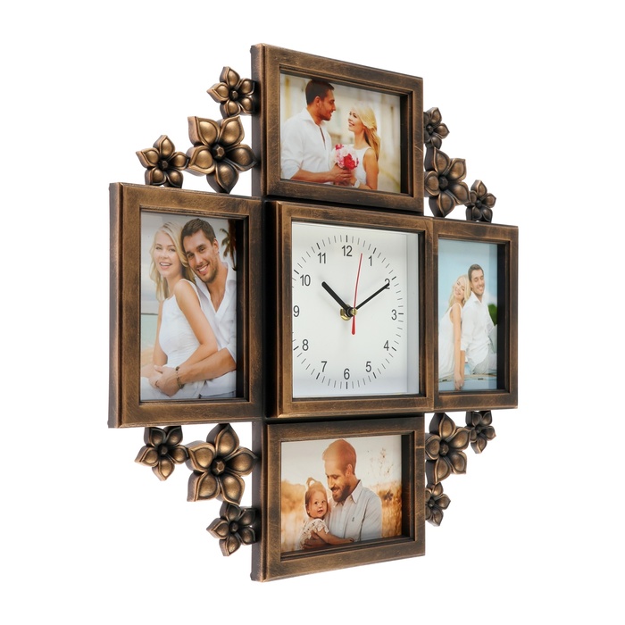 Фоторамка часы выполнена из качественного пластика, что обеспечивает устойчивость к механическим повреждениям. Благодаря оригинальному дизайну и гармоничному объединению рамок между собой, коллаж станет стильным дополнением вашего интерьера.