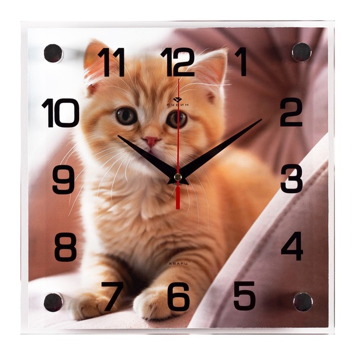 Бесшумные настенные часы - идеальное решение для создания стильного и уютного интерьера. Эти часы настоящая находка для тех, кто ценит качество и неповторимый дизайн. Настенные часы - это не только функциональный предмет, но и настоящий декоративный аксессуар. За счёт насыщенного изображения рыжего котёнка разнообразят интерьер вашего дома. Подрамник выполнен из ДВП - прочного материала, устойчивого к любым механическим поврежденям, изображение со временем не выцветает на солнце, не деформируется под влиянием повышенной влажности или перепадов температуры.
