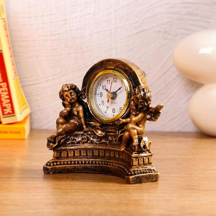 Часы настольные интерьерные на батарейках "Ангелы", 14 х 7 х 12.5 см, циферблат d-4.7 см