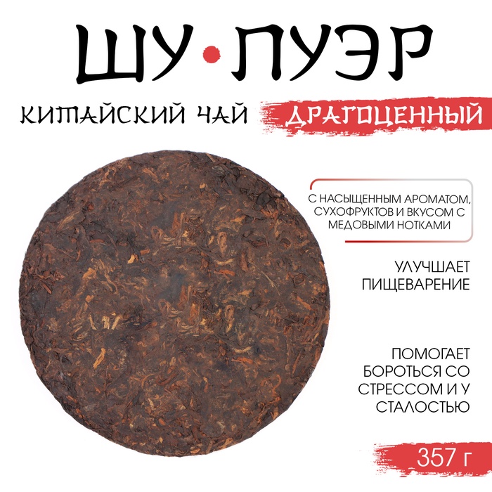 Китайский чай “Шу Пуэр Драгоценный” был произведен в 2018 году в провинции Мэнхай.