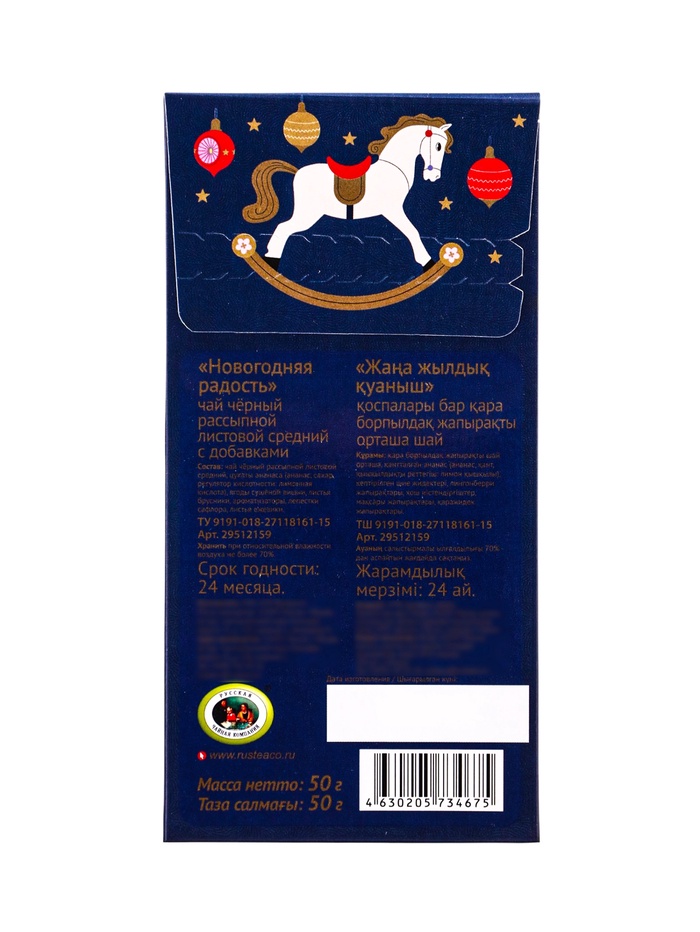 - Праздничное оформление коробки соответствует новогодней тематике.