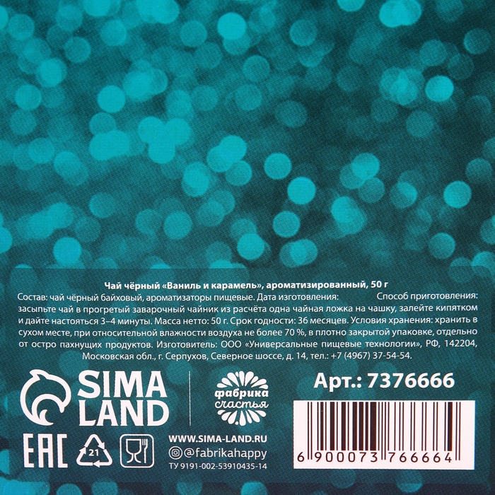 Состав: чай чёрный байховый, ароматизаторы пищевые.