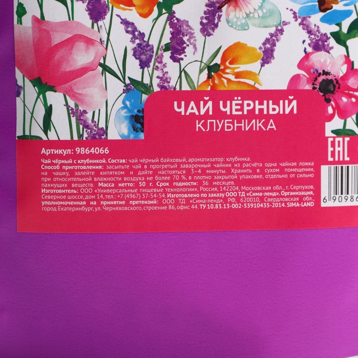 Состав: чай чёрный байховый, ароматизатор: клубника.