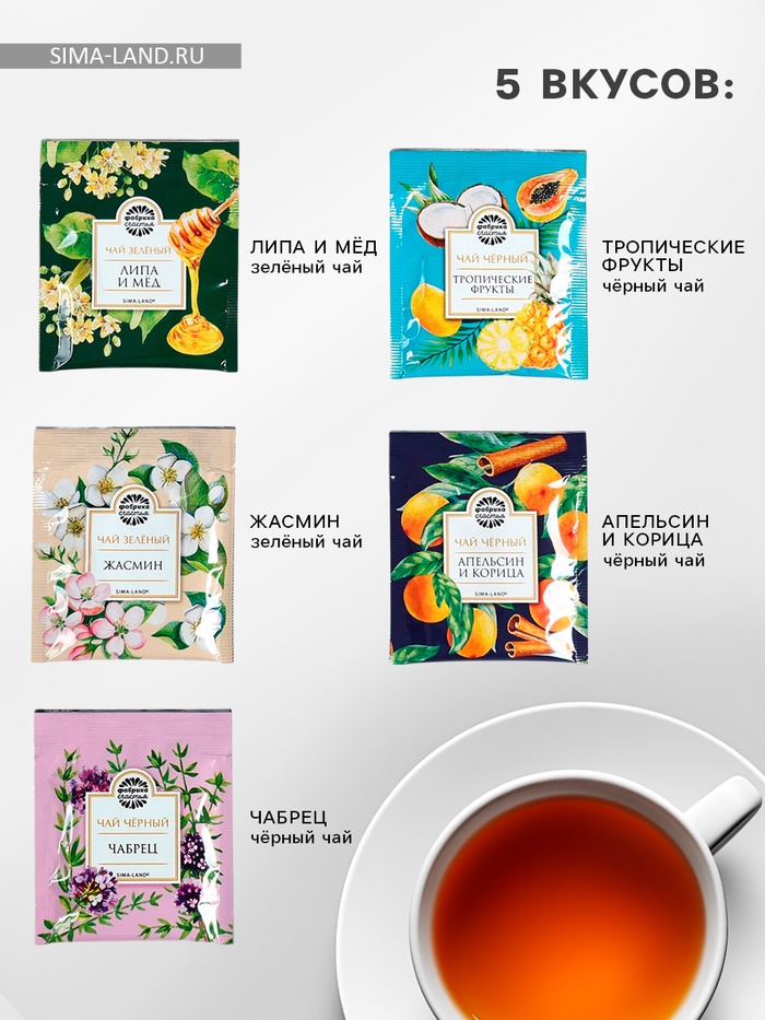 Способ приготовления: 1 чайный пакетик на 250 мл залить горячей водой, настаивать 3–5 минут.