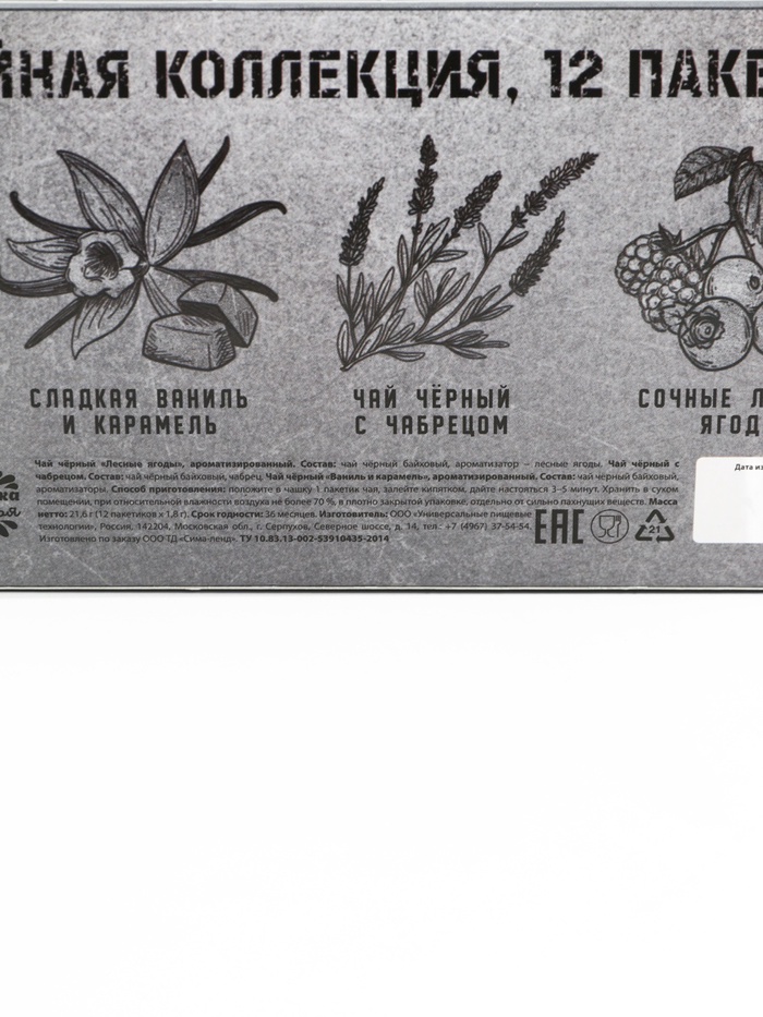 Состав: чай чёрный байховый, ароматизатор – лесные ягоды.