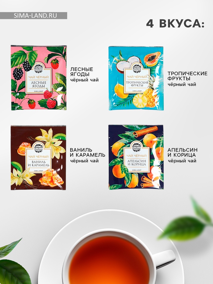 Состав: чай чёрный байховый, ароматизаторы пищевые.