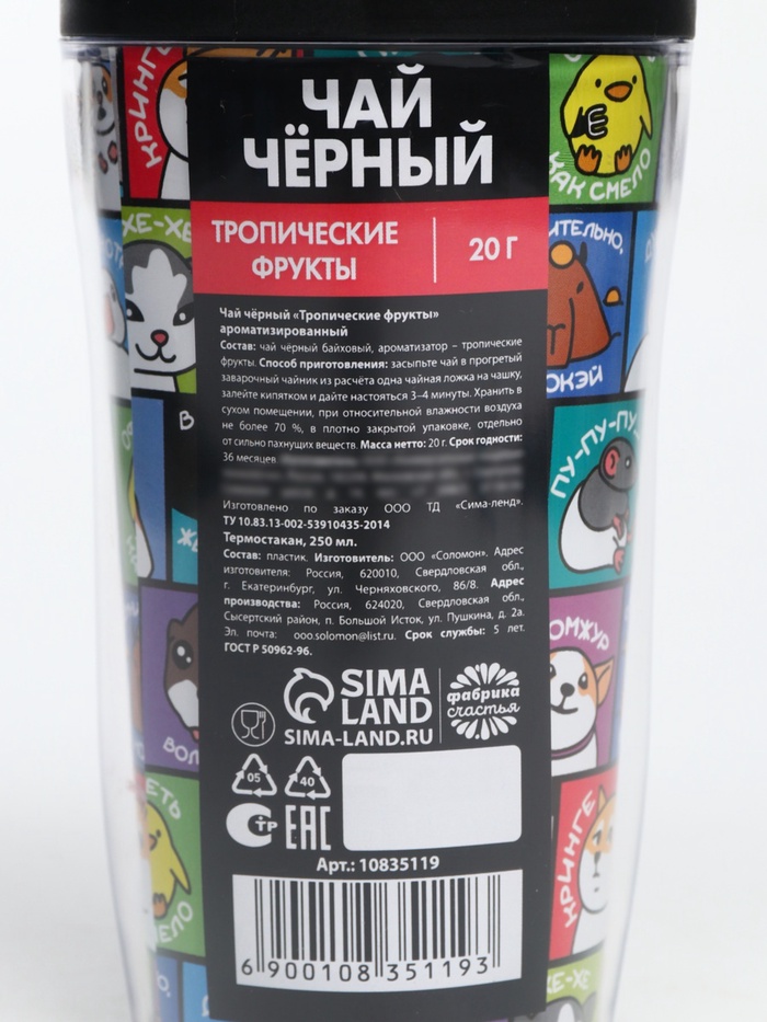 Чай подарочный в термостакане «Мемы», вкус: тропические фрукты, 20 г